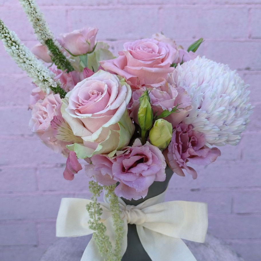 Bring a touch of natural beauty into your space with this designer grey vase, filled with a thoughtfully arranged selection of fresh flowers. The neutral-toned ceramic vase complements any décor style, making it a versatile and stylish addition to your home, office, or as a thoughtful gift. Whether you're celebrating a special occasion or simply adding charm to your surroundings, this vase arrangement is sure to brighten any day.